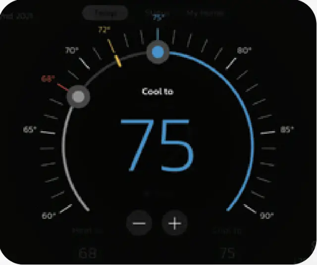Tap either of the "Heat To" or "Cool To" icons where a detailed horseshoe dial will allow you to select the perfect heating or cooling temperature setpoint.